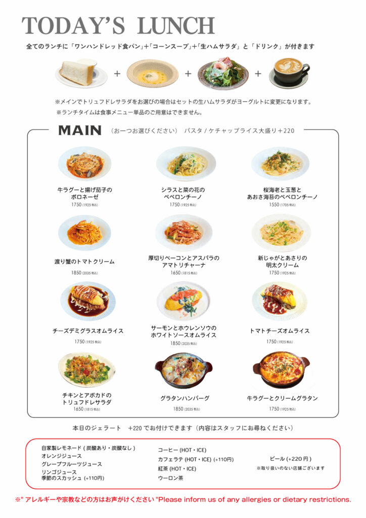 パンのお取り置き・ランチご予約につきまして、現在対応不可とさせていただいております。